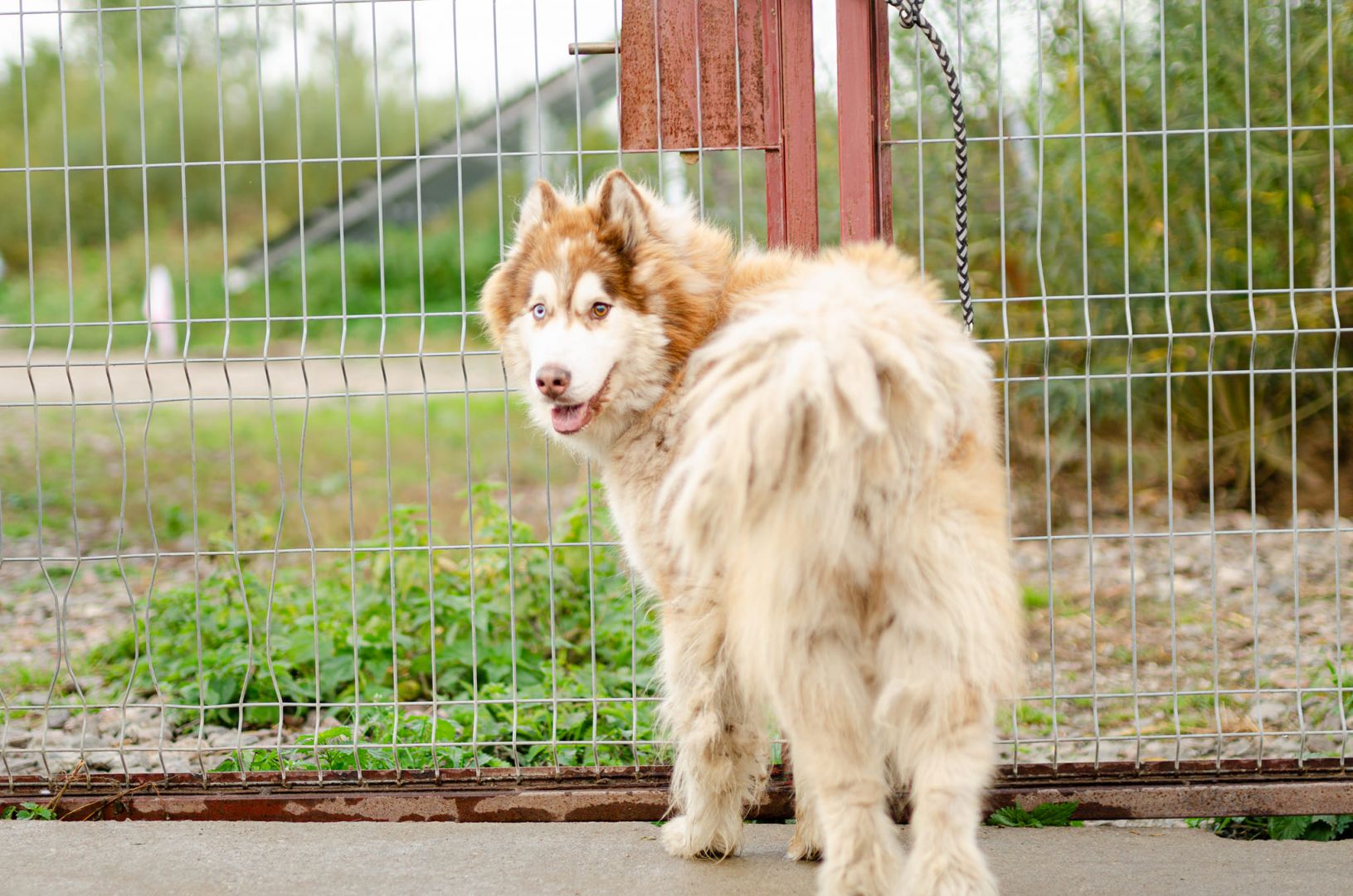 Ogonek trafił do schroniska po tym jak błąkał się...