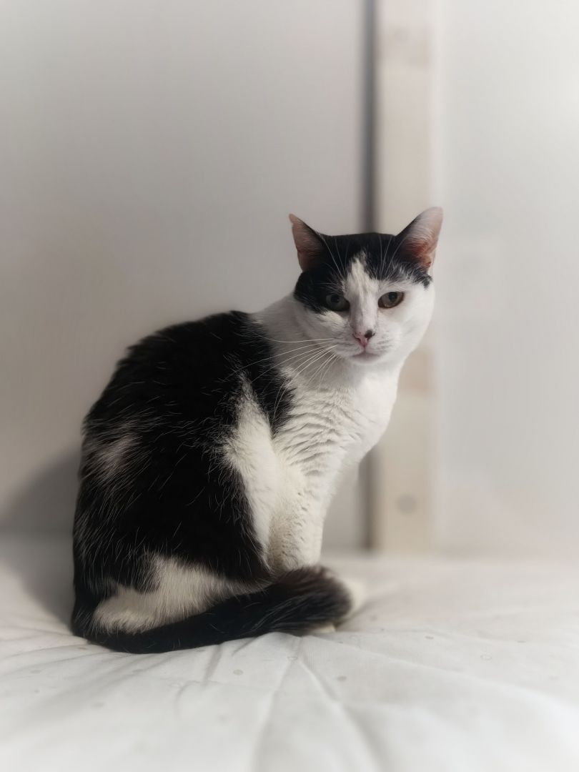 To bardzo spokojny i łagodny kot. Nie domaga się uwagi, nie narzuca się człowiekowi, ale widać, że w głębi serca pragnie czułości i poczucia bezpieczeństwa. Potrzebuje tylko czasu, by zaufać i się otworzyć. Nie jest typem rozrabiaki – to kocurek idealny dla kogoś, kto szuka towarzysza do spokojnego życia.