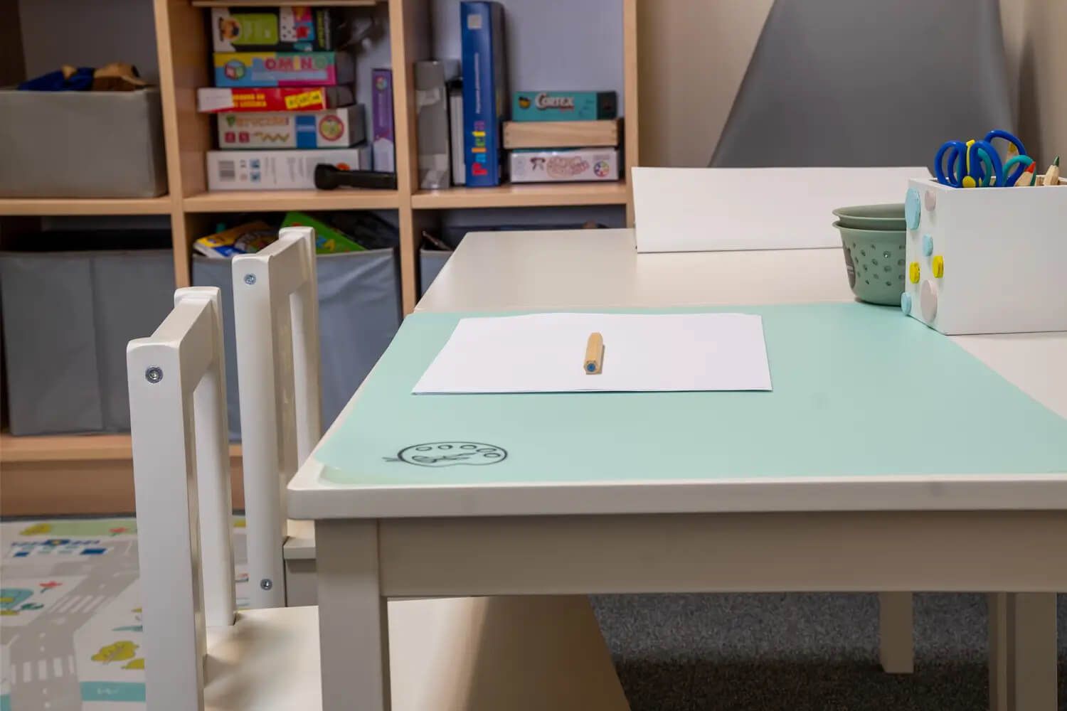 Zajęcia odbywają się w spokojnej, przyjaznej przestrzeni terapeutycznej, zaprojektowanej z myślą o komforcie i bezpieczeństwie dzieci. Centrum znajduje się w Krakowie przy ul. Ks. Meiera 11, co zapewnia dogodny dojazd i możliwość regularnej terapii.