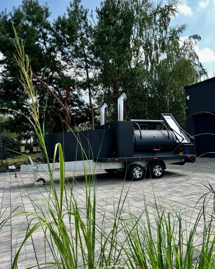 Grill na przyczepie Marki Route 66Grill . Model TEXAS 2 XXL.Urządzenie gastronomiczne przeznaczone do wędzenia i pieczenia produktów w gorącym dymie BBQ...