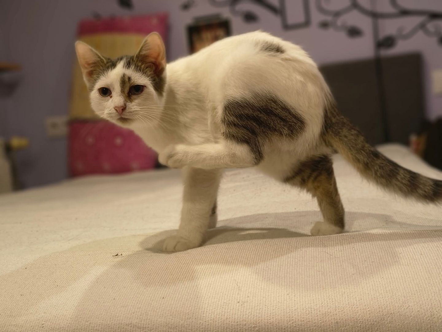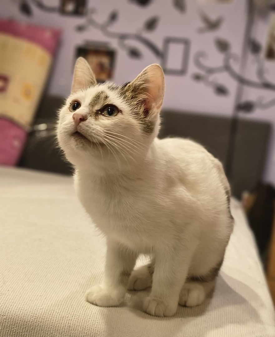 Kocurek jak na młodzieniaszka przystało uwielbia zabawy, ganianki z innymi kotami, wszystko go interesuje i przybiega właściwie na zawołanie. Doszczętnie zakochany w człowieku. Straszny misiak, wciska głowę w rękę żeby tylko go głaskać, a do tego straszna z niego gaduła. Przeżył już okropne rzeczy rzeczy w swoim króciutkim życiu, więc teraz już musi być tylko lepiej.
