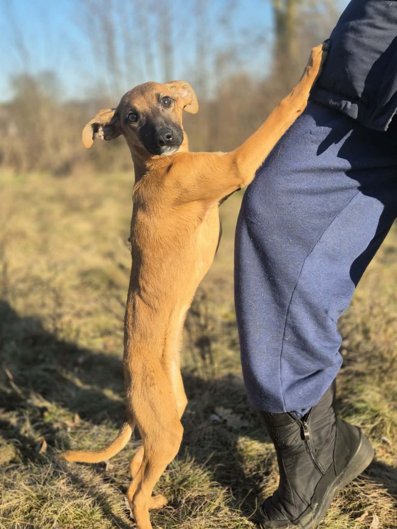 Ma 5 miesięcy, sięga pod kolano, waży ok. 5-6 kg, ma figurę sarenki.