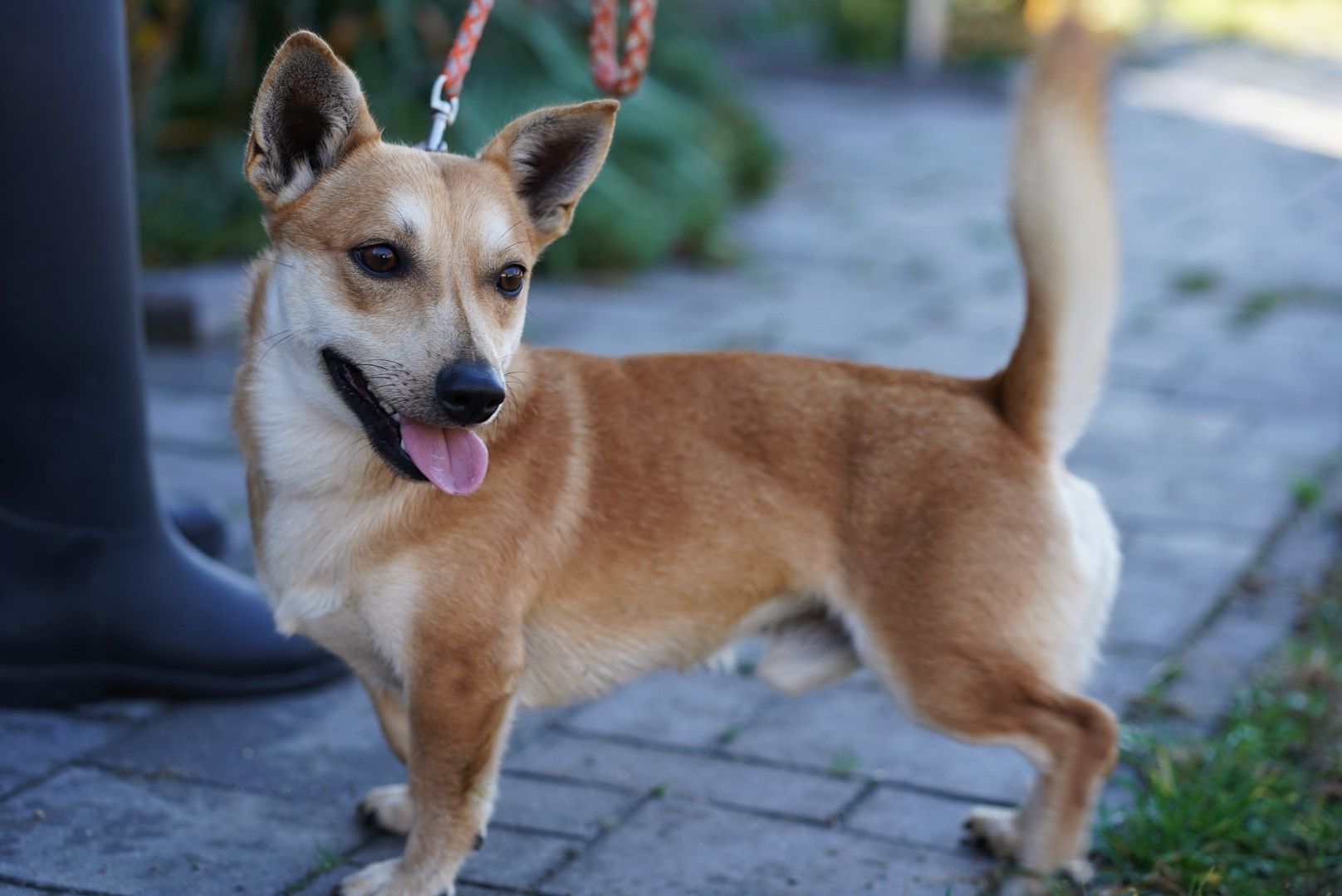 Figo to bardzo pozytywny młody psiak. Oceniamy go na 1,5 roku. Mały, sięga najwyżej do połowy łydki.