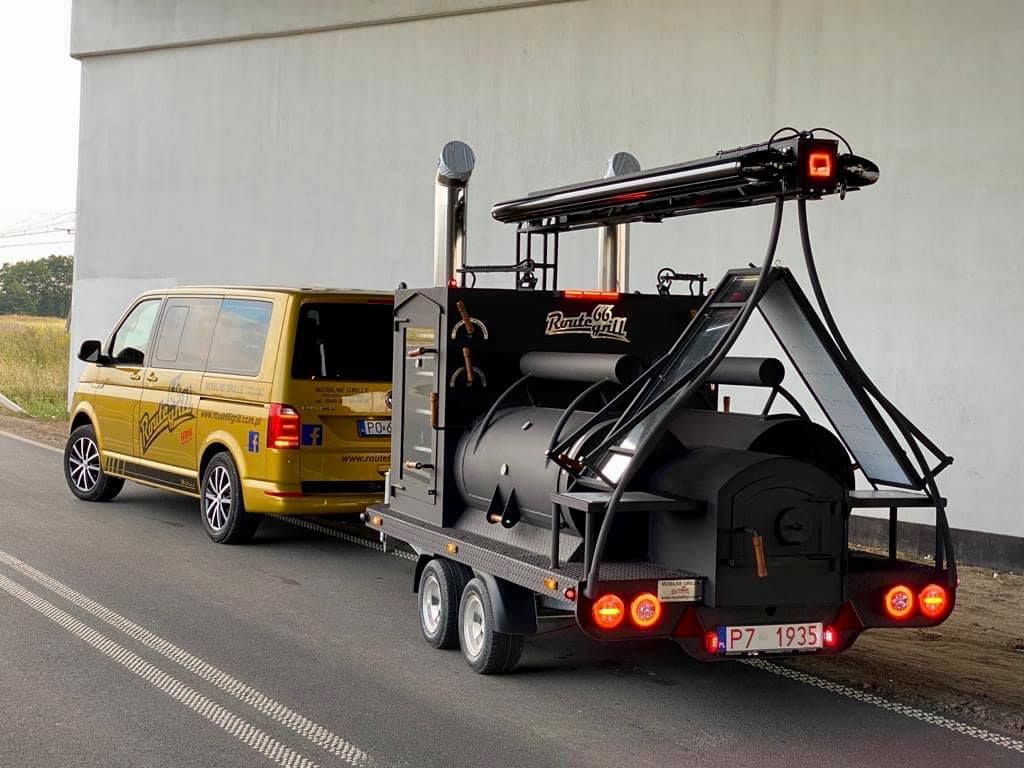 Grill na przyczepie .Bez wątpienia to największe tego typu urządzenia w Polsce, zbudowane na trzyosiowej blisko 9 m platformie . Wyposażony w dwie podświetlane...