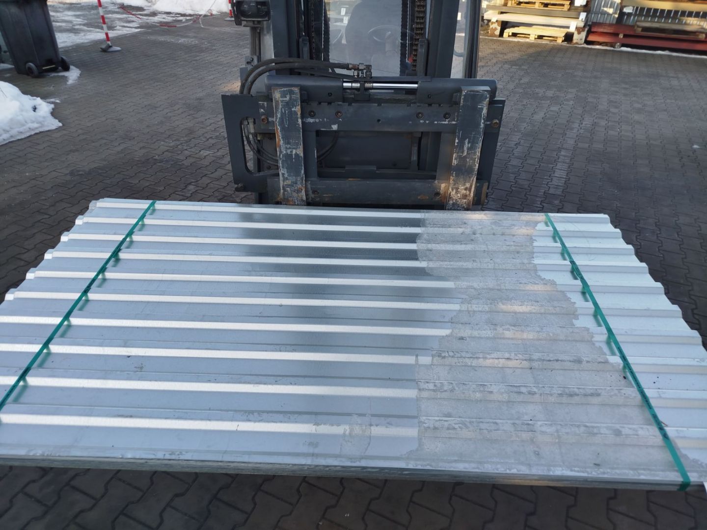 Na sprzedaż blacha trapezowa II gatunku (towar z wadami powłoki) — paczki po ok. 50 arkuszy, łączna powierzchnia pakietu ok. 114 m². Profil TBD-18 o szer...