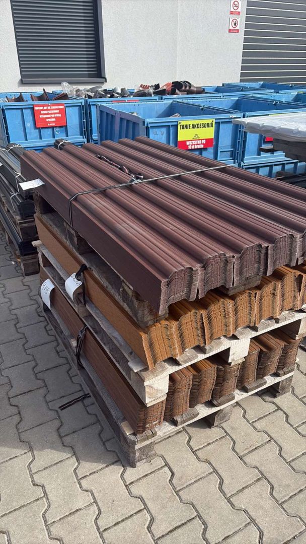 Przedmiotem sprzedaży jest paczka blachy, pakiet trapezu dachowego, w profilu TBD-18, kolor RAL 3009, czerwień tlenkowa w powłoce matowej.