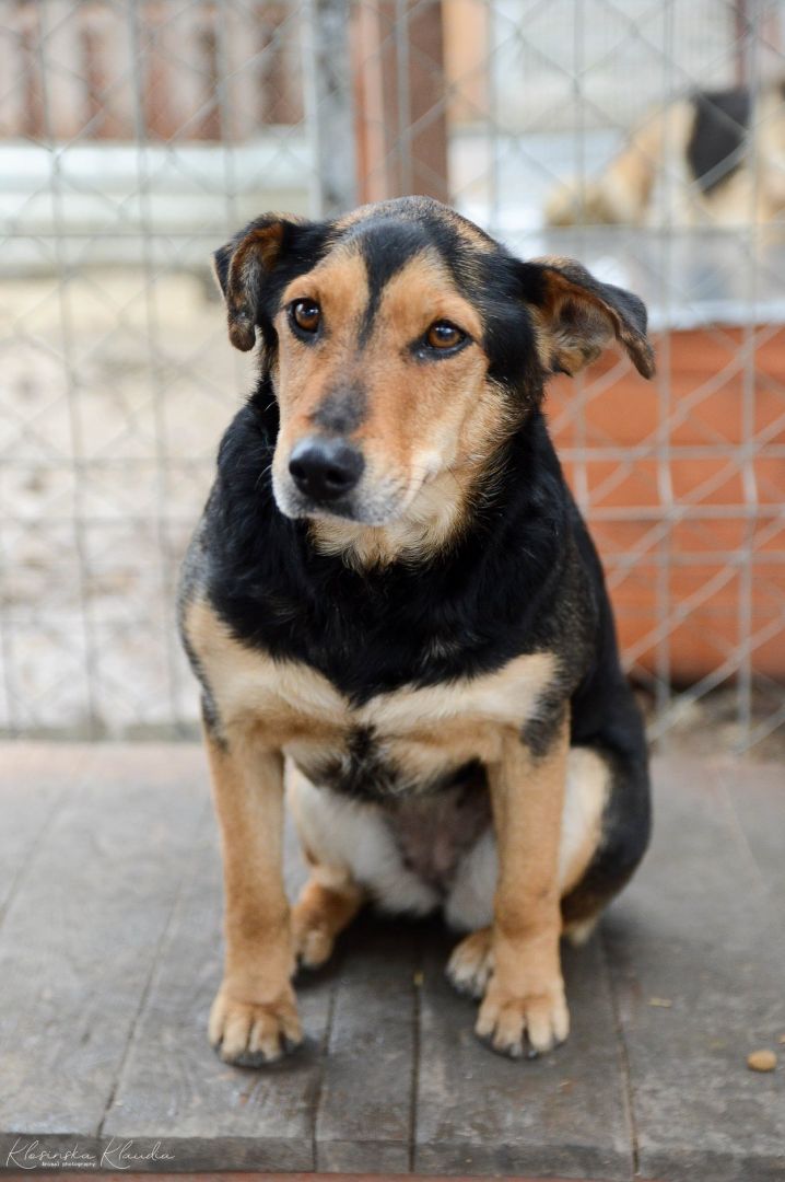 Tedzia to średniej wielkości, około 3-4 letnia suczka. Trafiła do naszego schroniska w zagłodzona, wylękniona i w zaawansowanej ciąży. Tedzia przez wiele tygodni dochodziła do siebie. Po przeszłym życiu Tedzi został jej nawyk noszenia misek, musiała być "wiecznie" głodna.