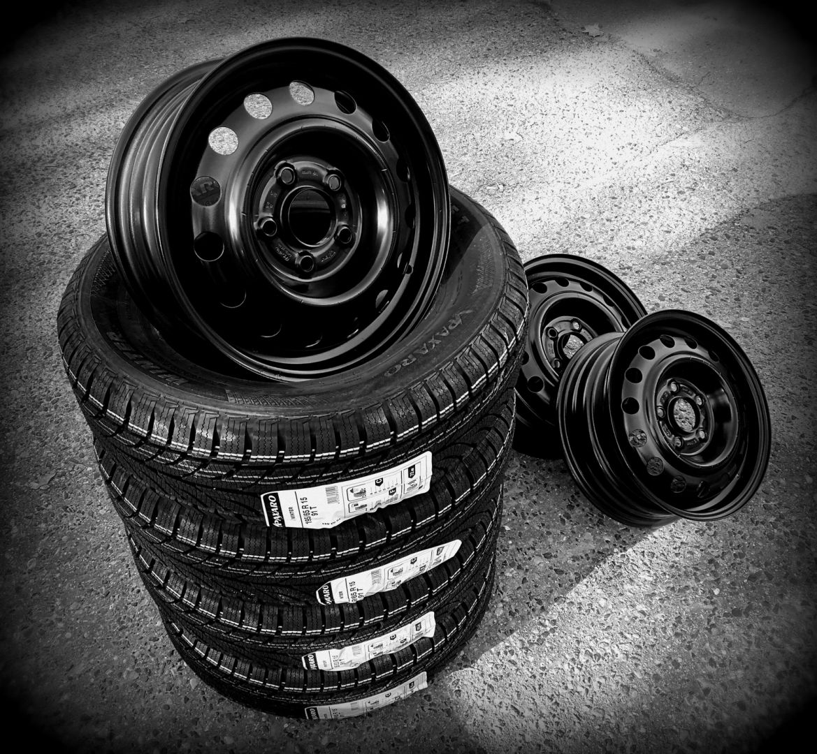 Za komplet na feldze stalowej kasujemy od 110 zł - wymiana + wyważenie.